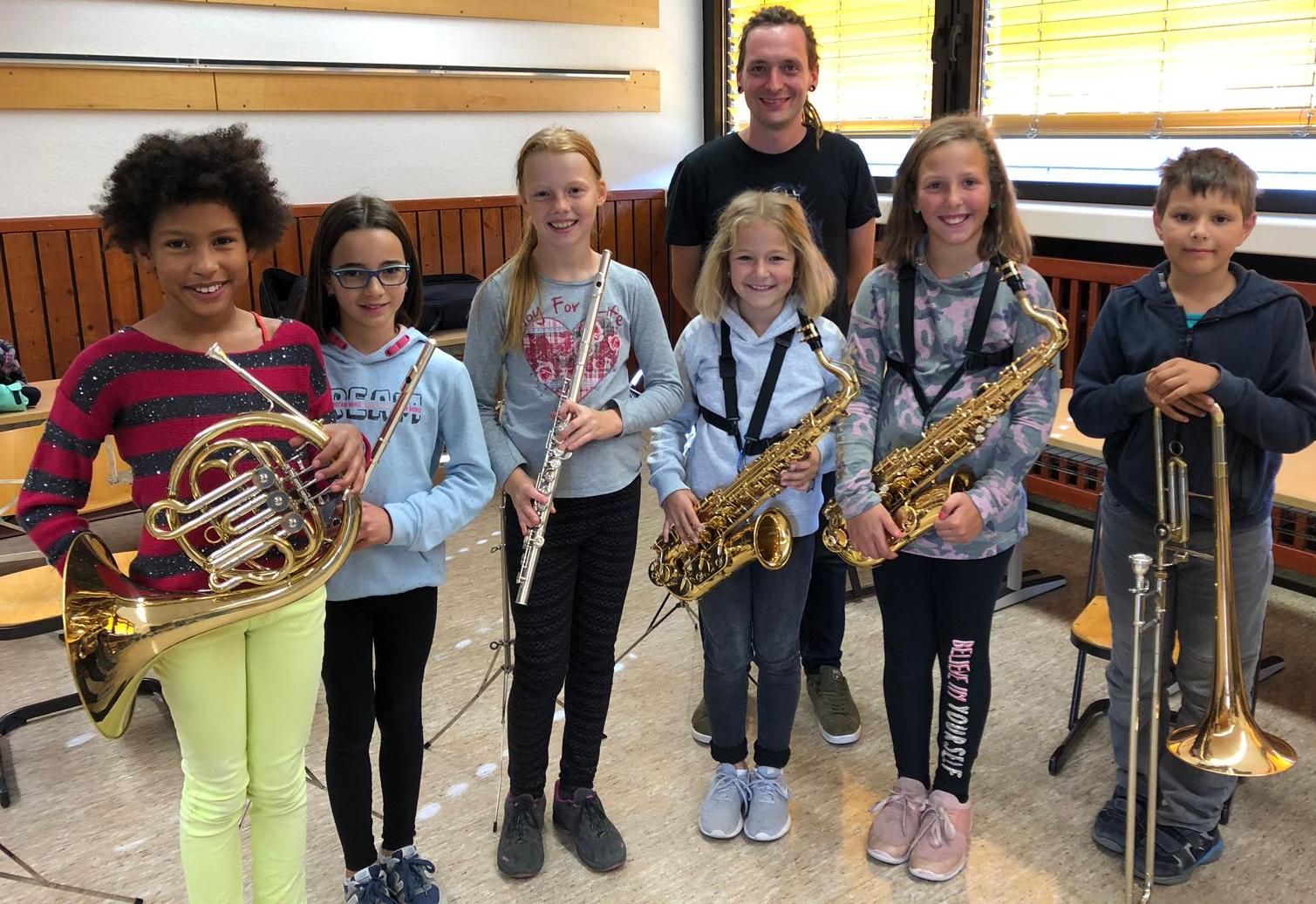 DetailsAm vergangenen Freitag den hatte die neue Bläserklasse mit dem neuen Bläserklassenleiter Joachim Kölmel ihre erste Probe um 11:15 Uhr in der Schule. Dies sind auf dem Bild von links: Jasmin Claes / Horn, Nora Bär / Querflöte, Jule Harter / Saxofon, Romina Ludwig / Saxofon, Justus Maxim / Posaune Die Bläserjugend wünscht den Kindern…