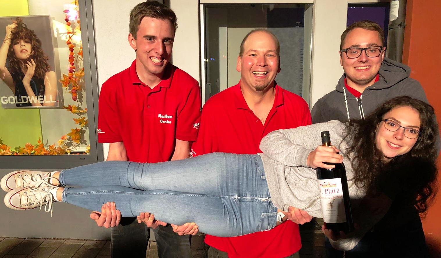 DetailsAm vergangenen Samstag nahm das Team „Musikverein Önsbach“ mit Manuel Herr, Dominic Heyse, Lisanne Spengler und Christoph Kast an der Winzerolympiade in Kappelrodeck teil. Bei der ersten Disziplin mussten Dominic und Manuel ein Weinfass durch Kappelrodeck rollen. Anschließend wurde von den 3 Jungs eine mit 20 Kg Trauben gefüllte Bütte im Laufschritt zu der Weinpresse…